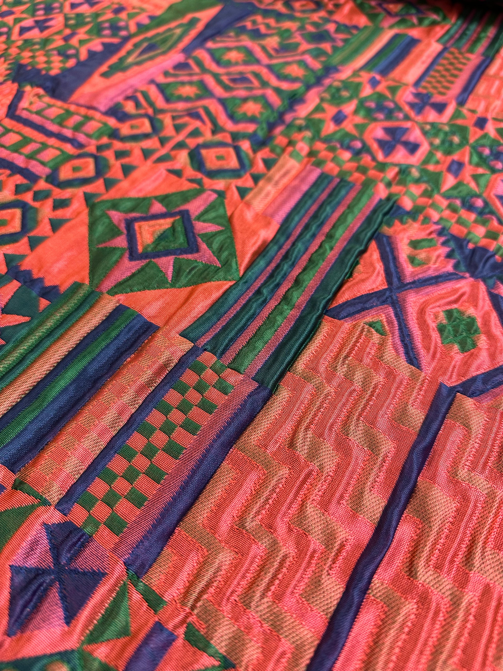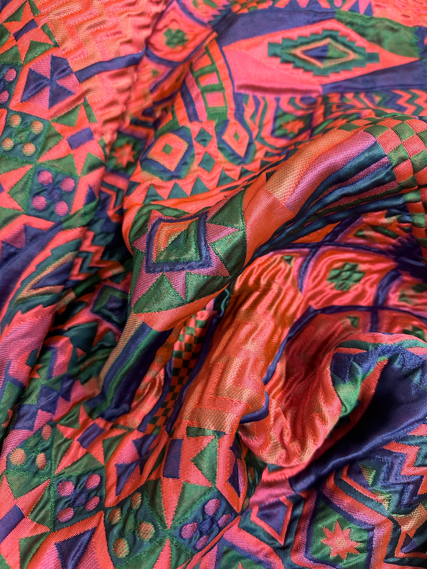 Tämä kaunis, taipuisa jakardi on erinomainen valinta jakkuihin, hameisii, housuihin, tunikoihin, mekkoihin ja moneen muuhun. Kangas on kaksipuoleinen ja voit käyttää kumman puolen vain.