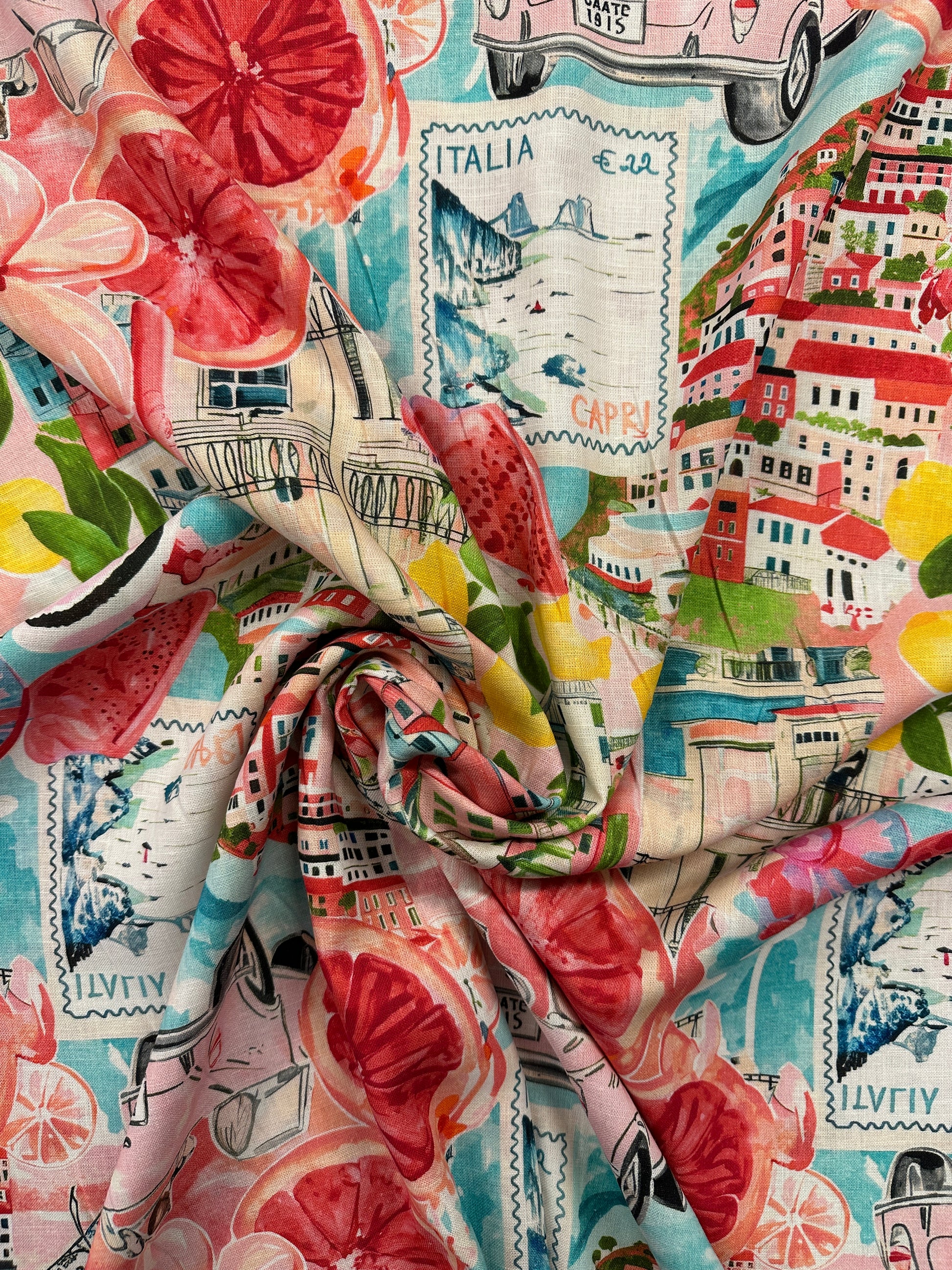 Capri, pinkki, pellava.