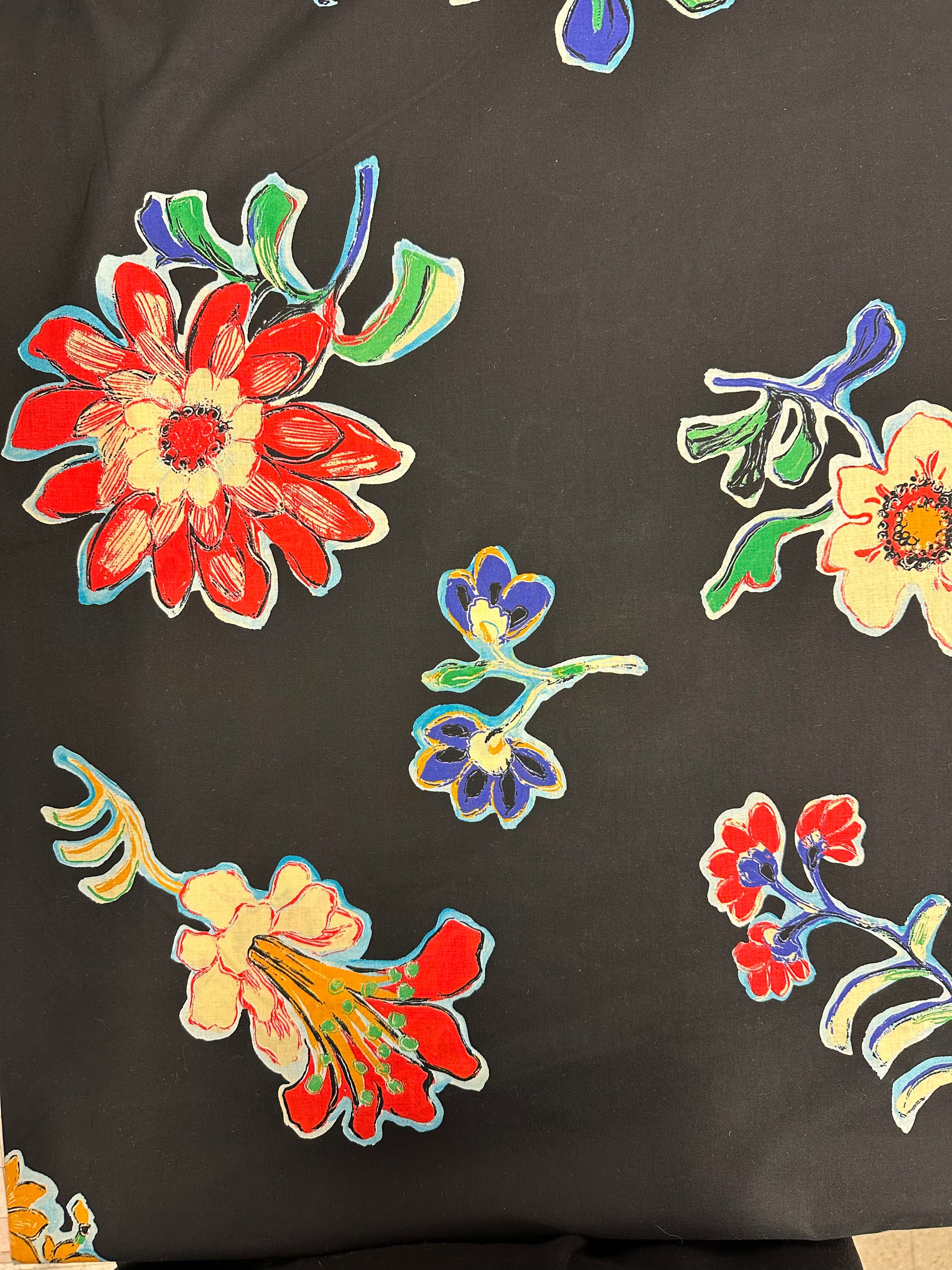 Kankaan pohjaväri on musta, osassa kuvista kamera vääristää väriä.