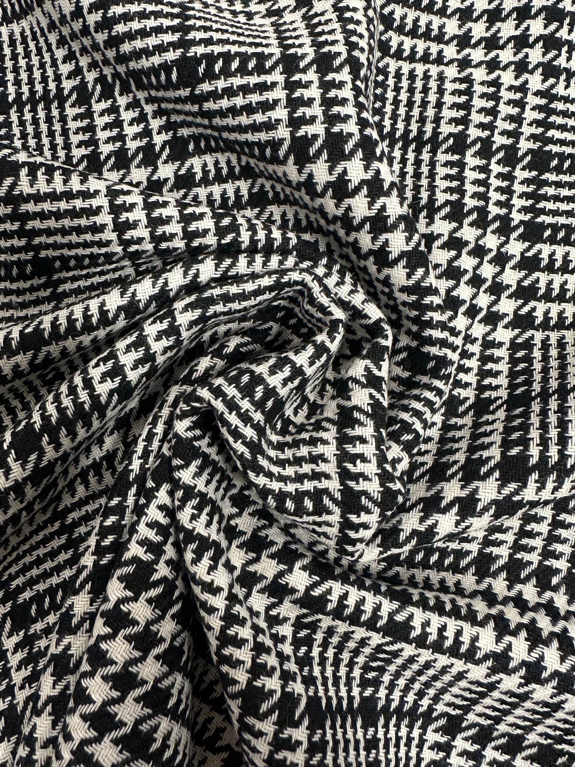 Tämä villasekoite sopii housuihin, hameisiin, jakkuihin, pukuihin jne. Moneen sopiva, klassikkokuvioinen villakangas.