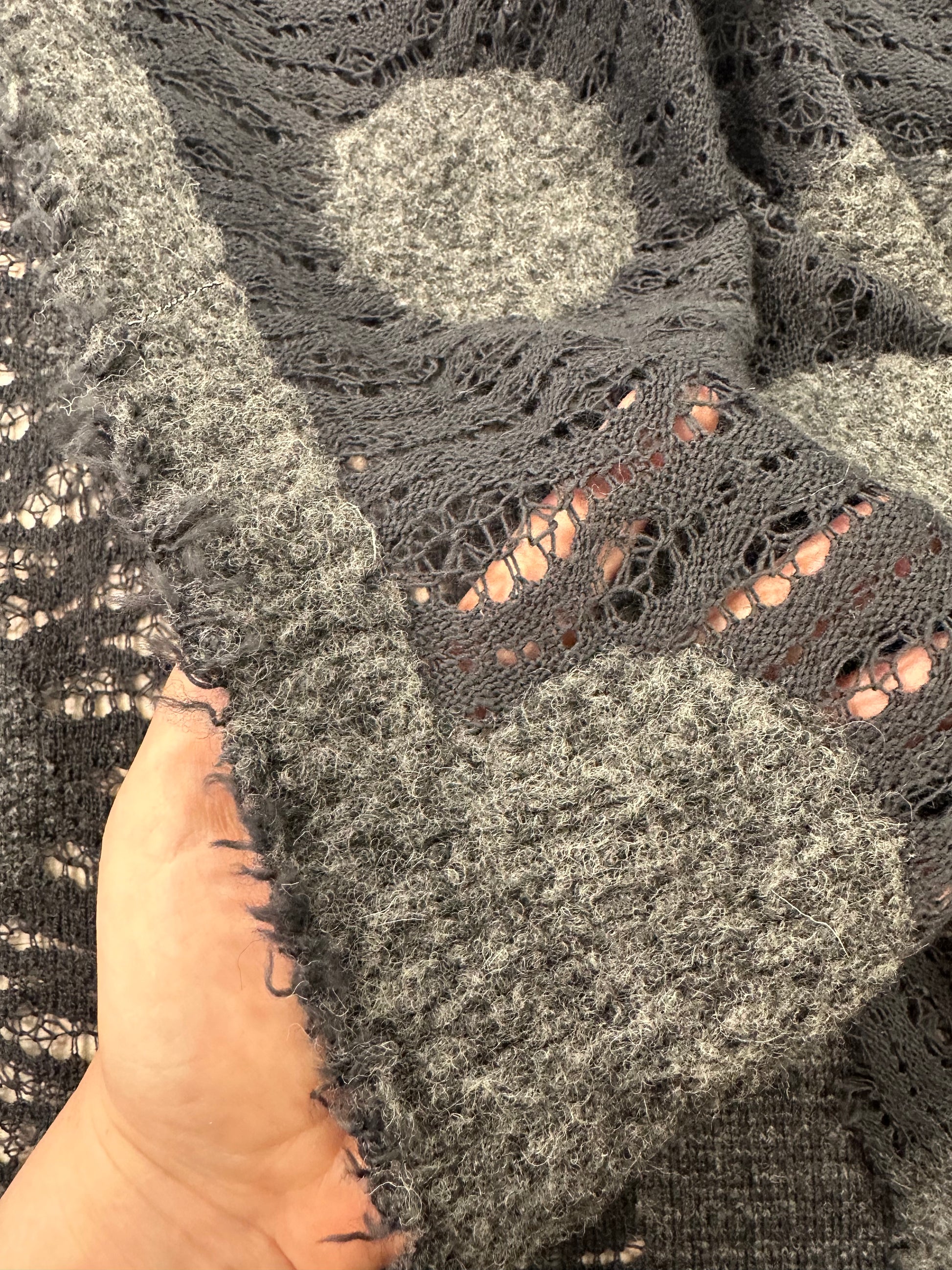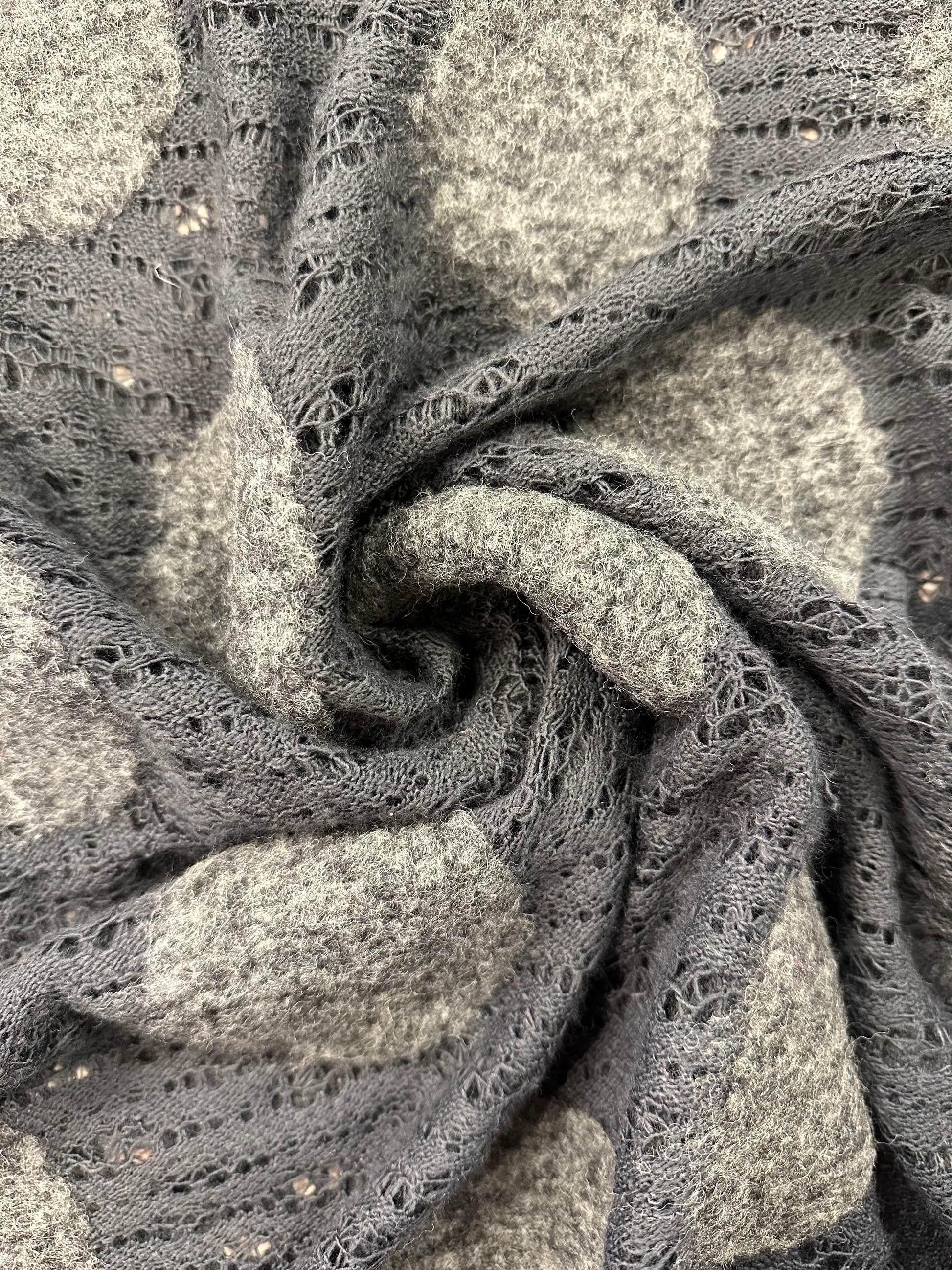 Villasekoiteneulos, jossa hauskat villaiset, huovutetut pallokuviot. Sopii paitoihin, huiveihin yms.