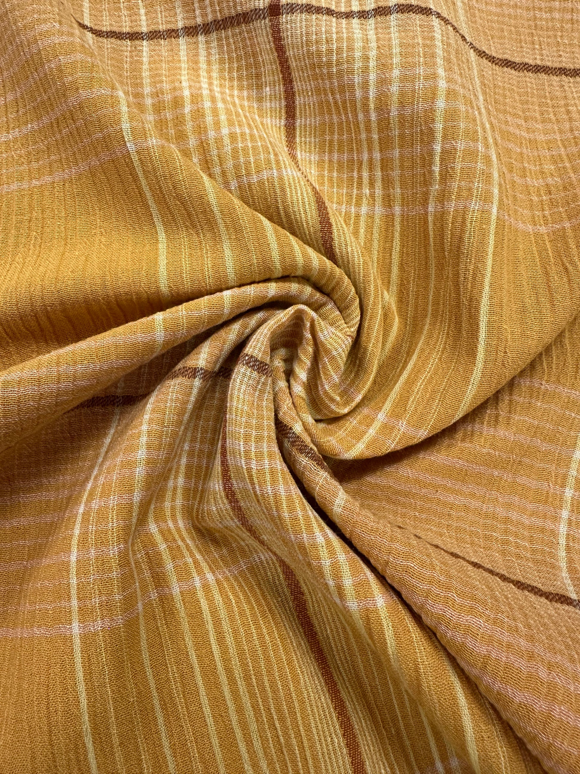 Intianpuuvilla on harsomainen ja kevyt puuvilla. Sen pinta on struktuurinen ja elävä. Se hengittää hyvin ja sopii erinomaisesti tunikoihin, paitoihin, mekkoihin, housuihin, huiveihin ja pyyhkeisiin. Tässä kankaassa on kudotut raidat/ruudut.