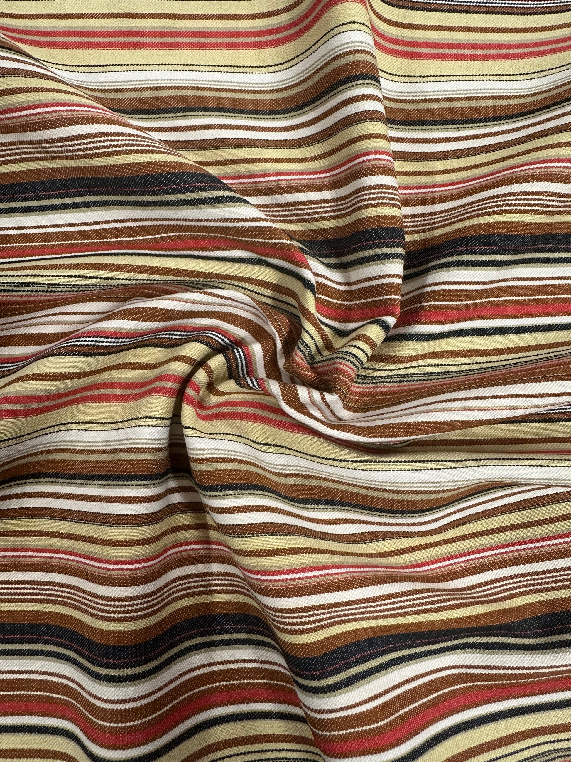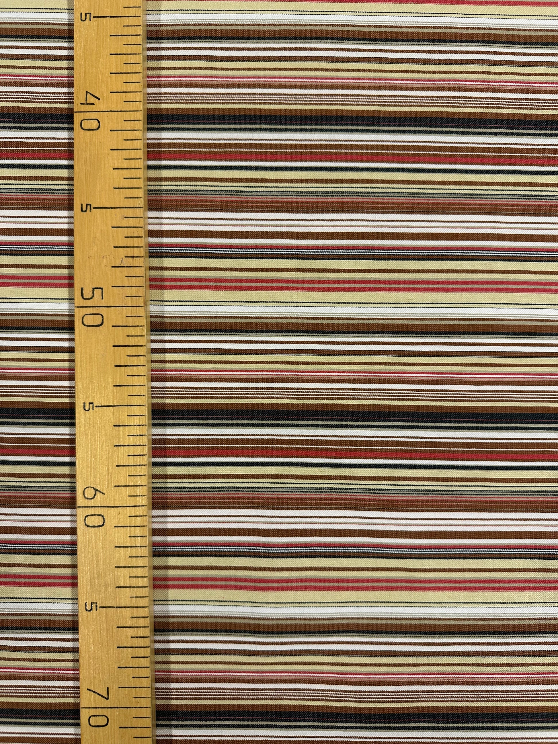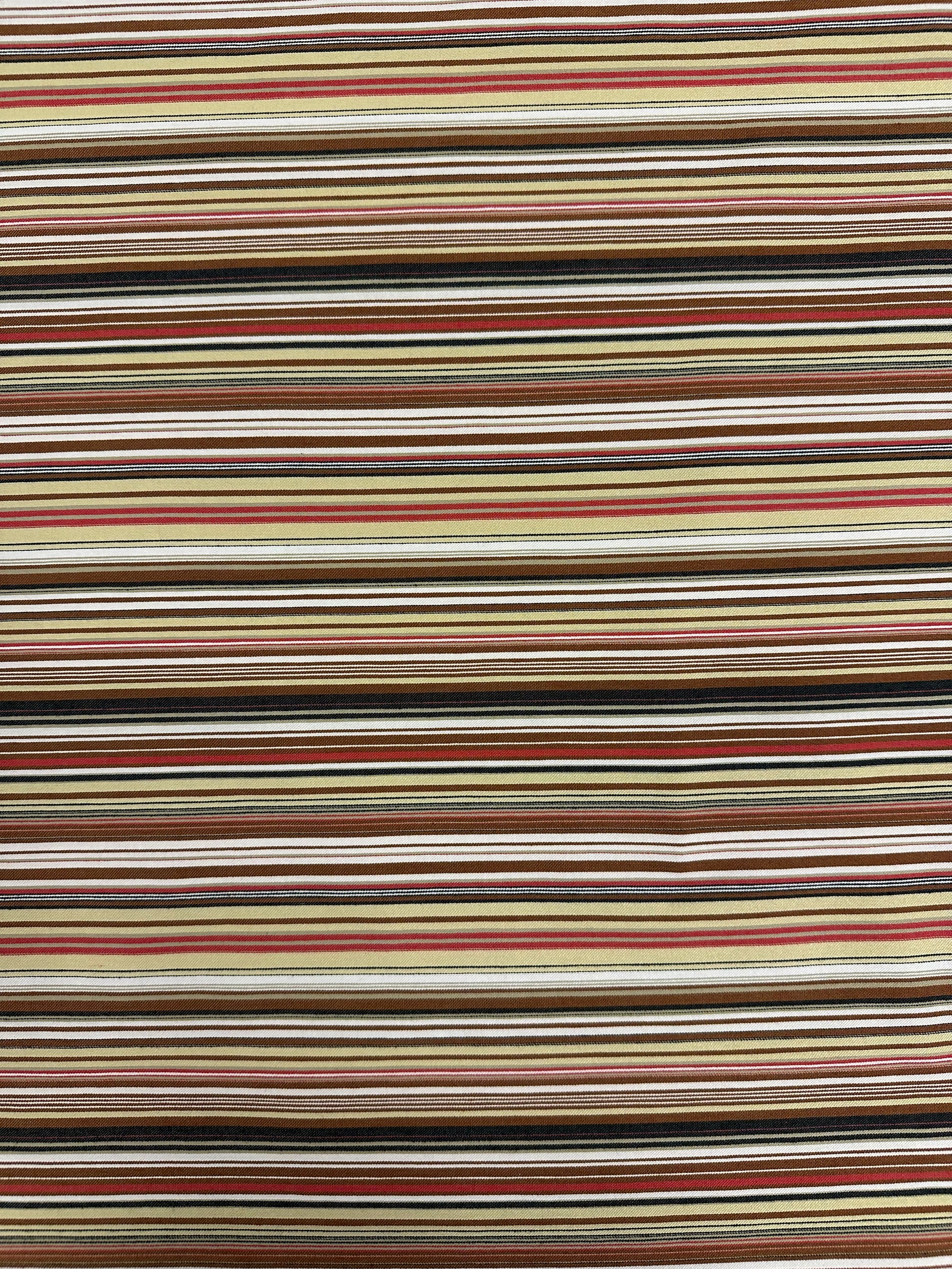 Materiaali: 75 % puuvilla, 20% polyester, 5 % elastaani. Raidat on kudottu kankaaseen ja ovat kankaassa poikkisuuntaan.