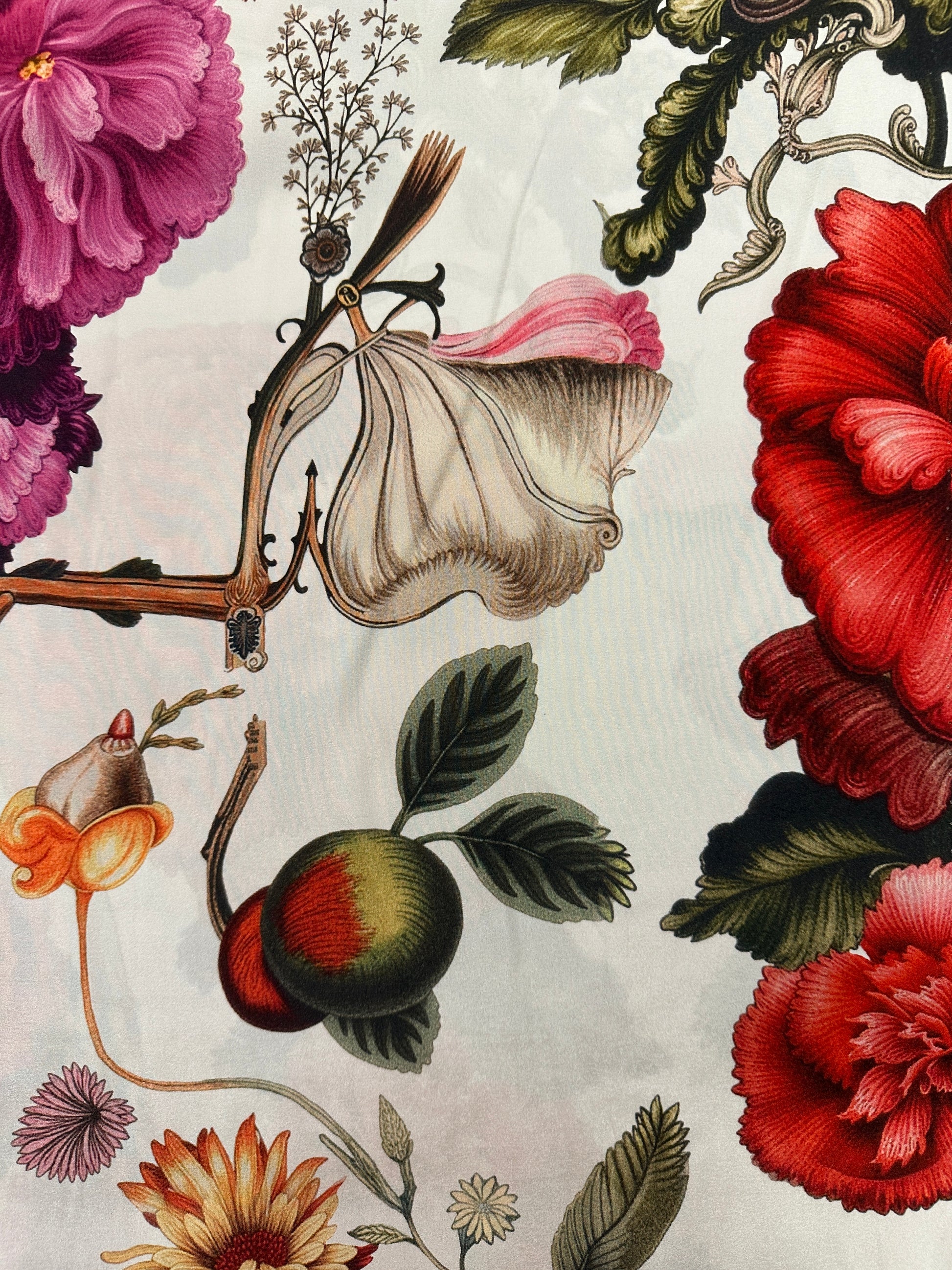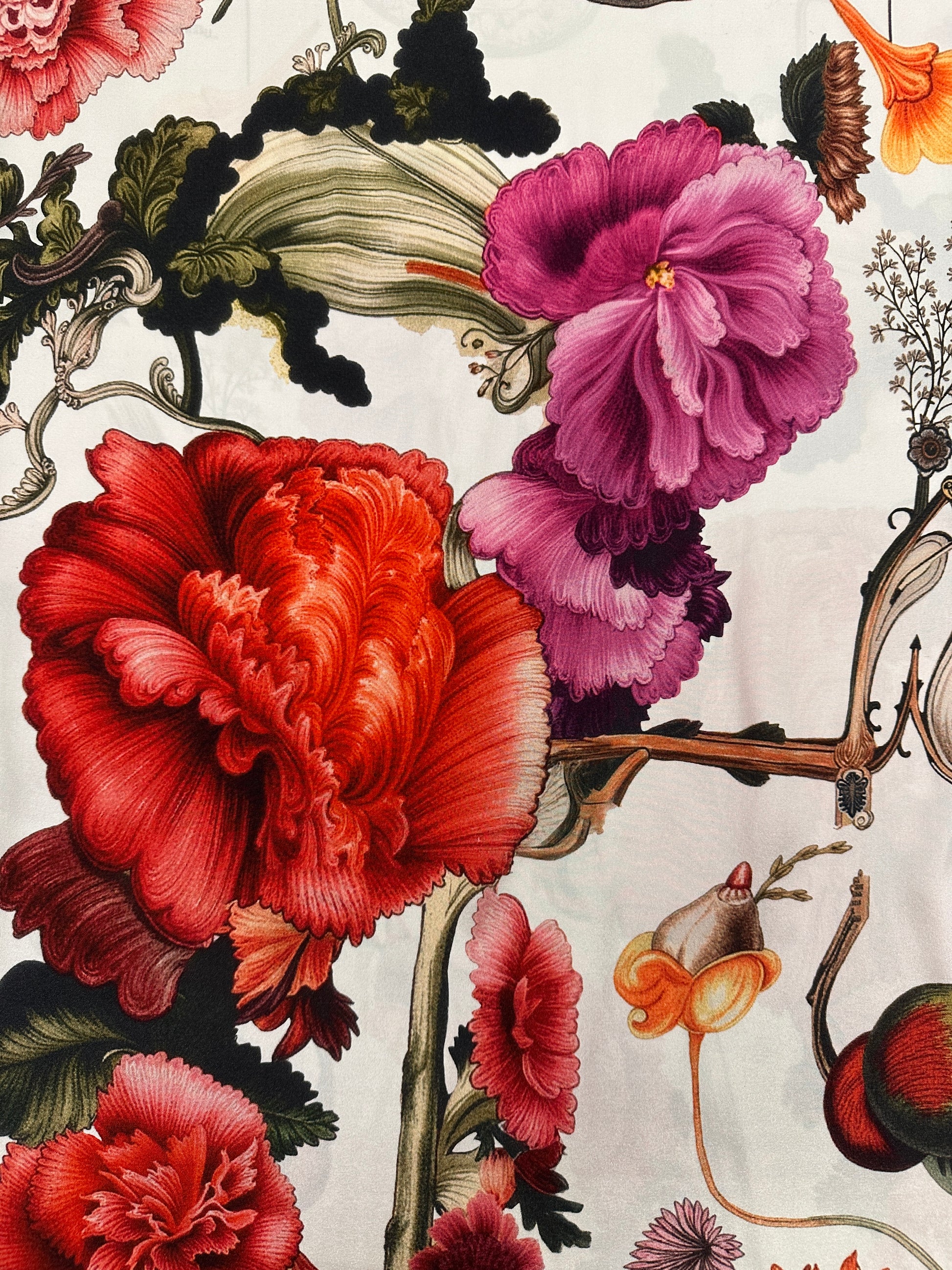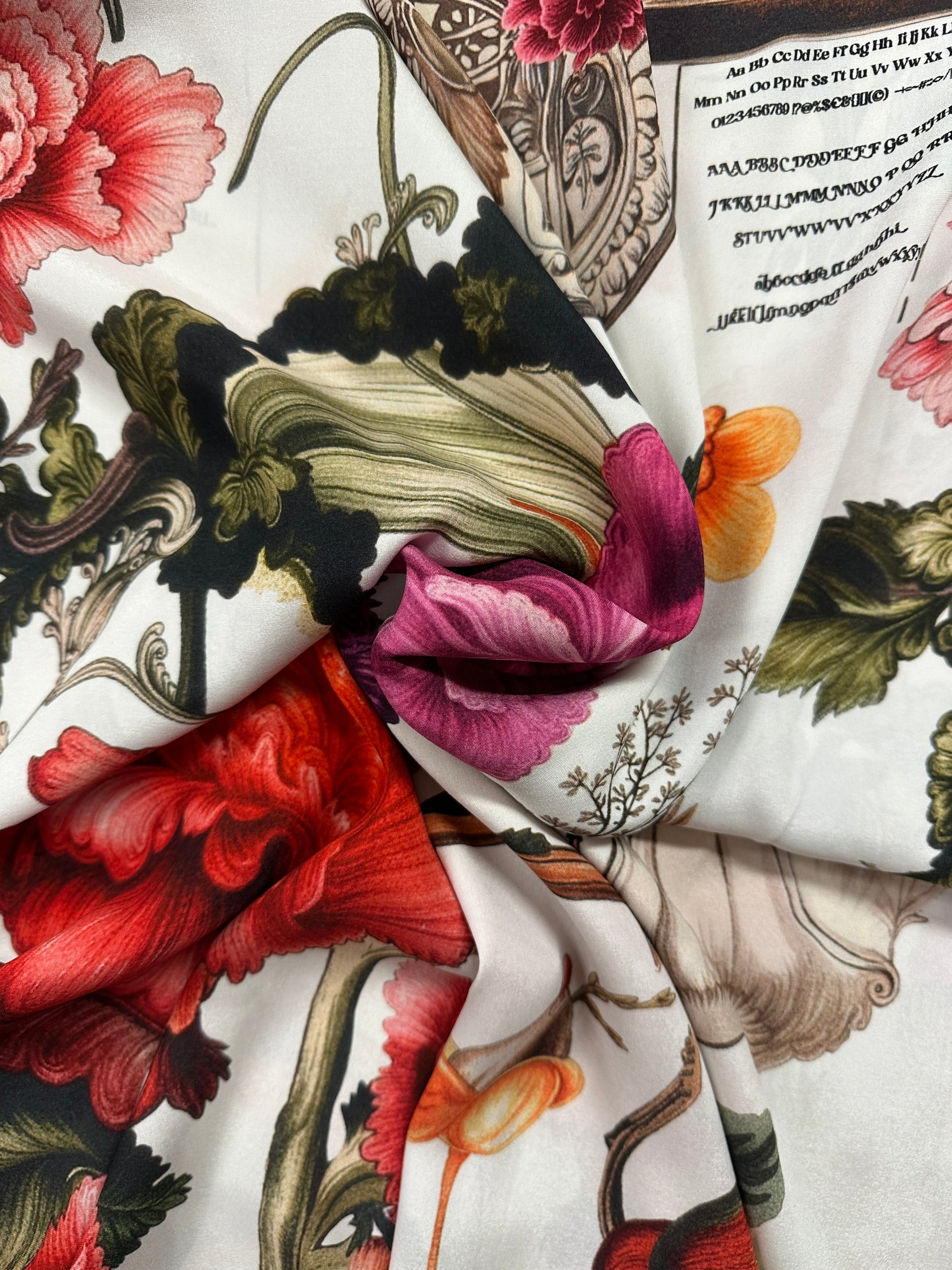 Tämä upea Libertie joustosilkki laskeutuu kauniisti ja siinä on pehmeä kiilto nurjalla puolella. Sopii erinomaisesti paitoihin, huiveihin, mekkoihin ja hameisiin. Kuvio painettu kankaaseen.