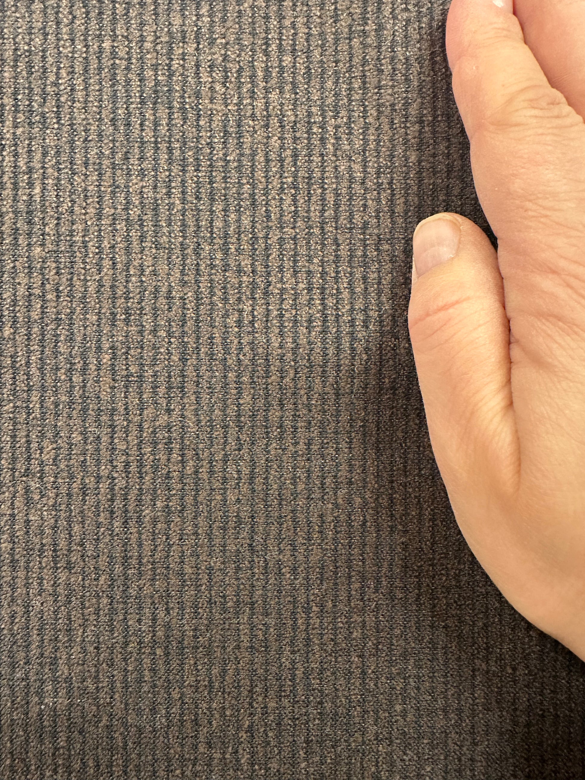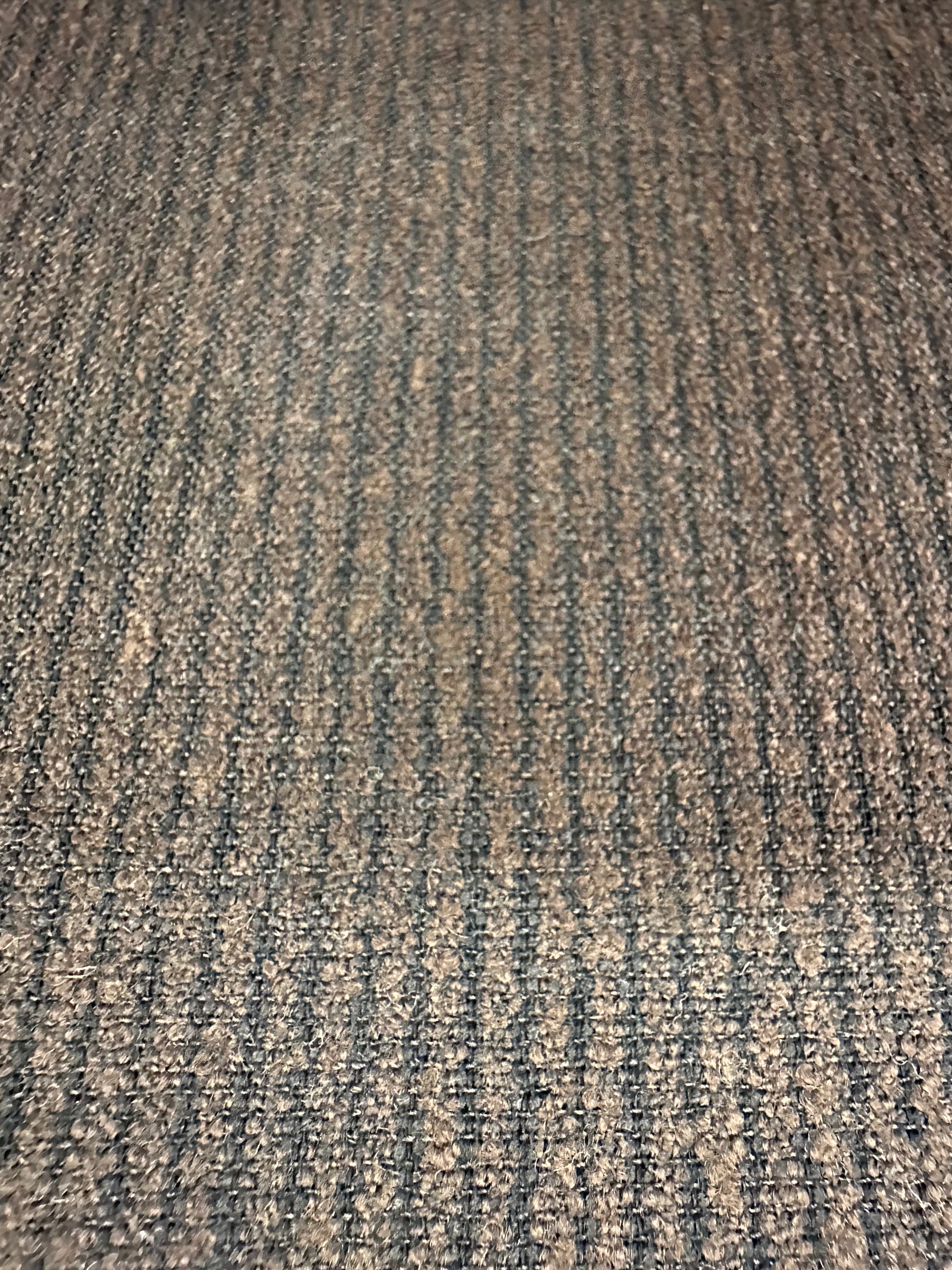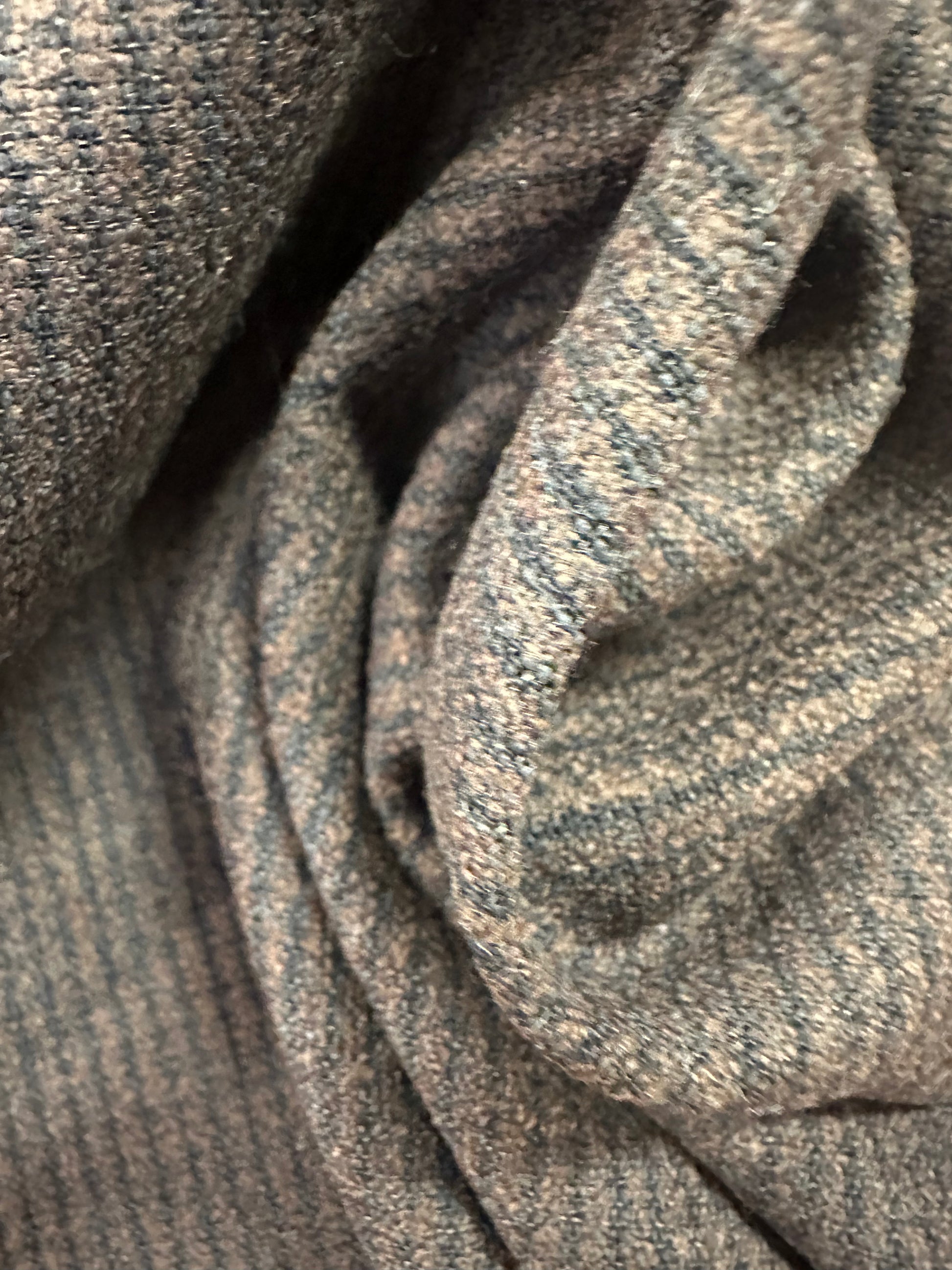 Ihanan laadukas villakangas, jossa on ohut musta-ruskea raidoitus kankaan pituussuunnassa. Raidat ovat 1 mm leveitä. Todellinen väri on lämpimämpi kuin kuvissa. Sopii erityisen hyvin housuihin, takkeihin ja jakkupukuihin.