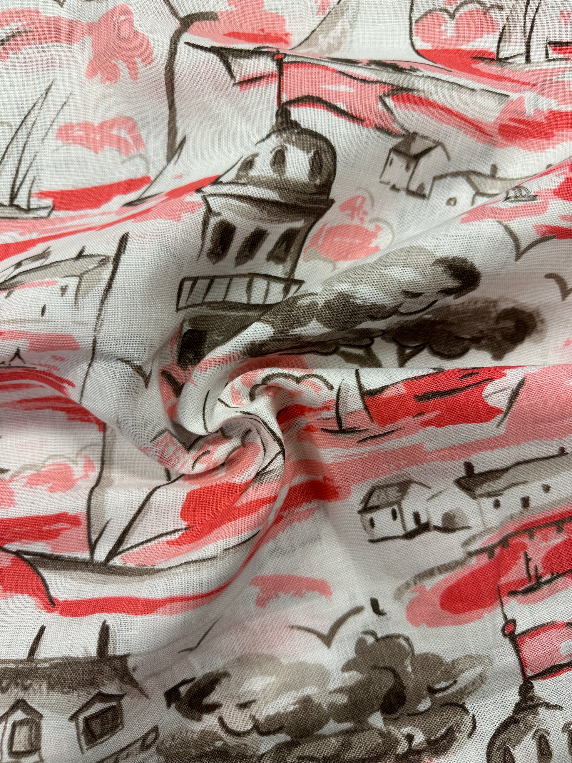 Tämä kaunis painettu pellava sopii sekä vaatetuksen että sisustukseen.