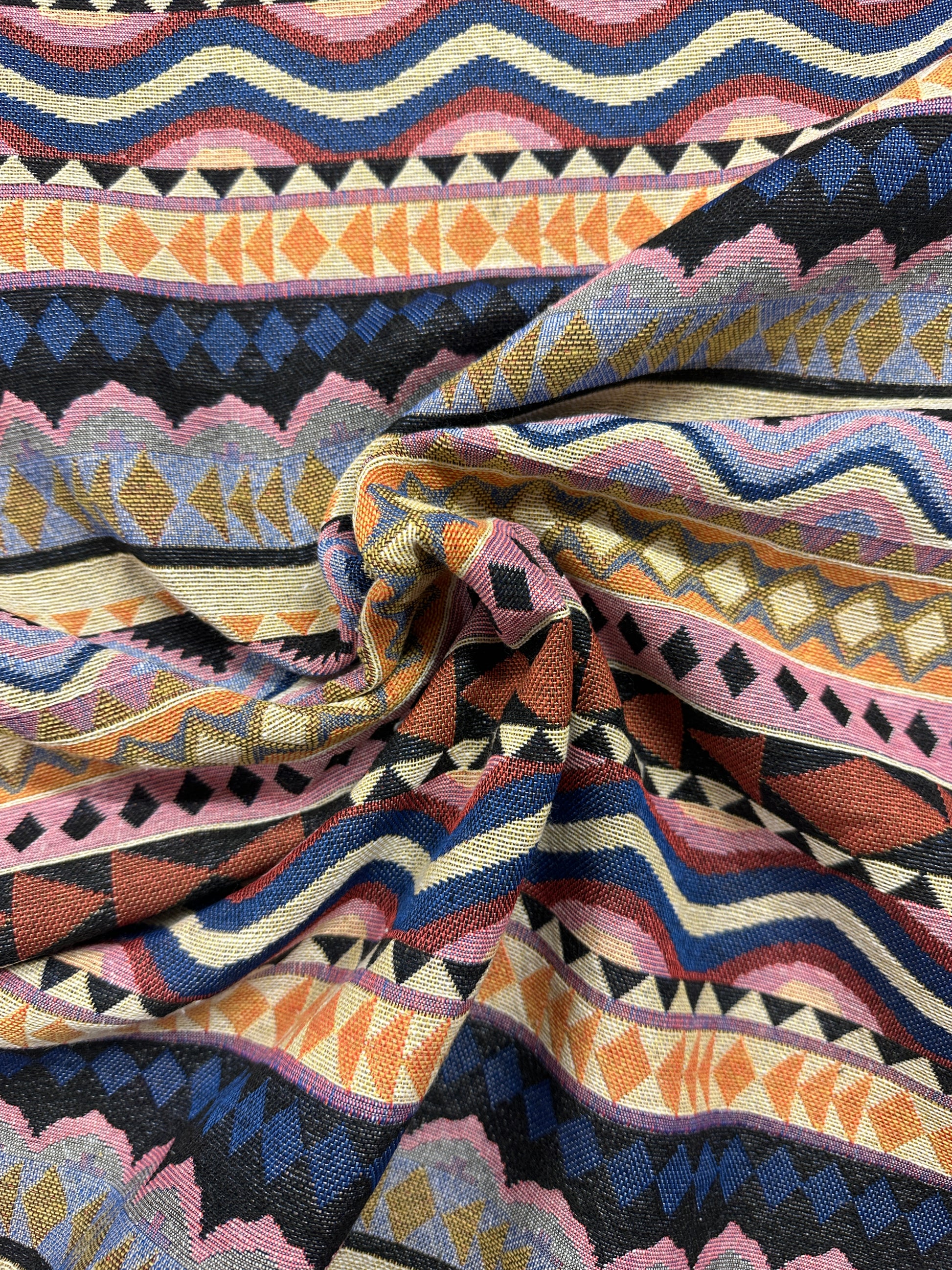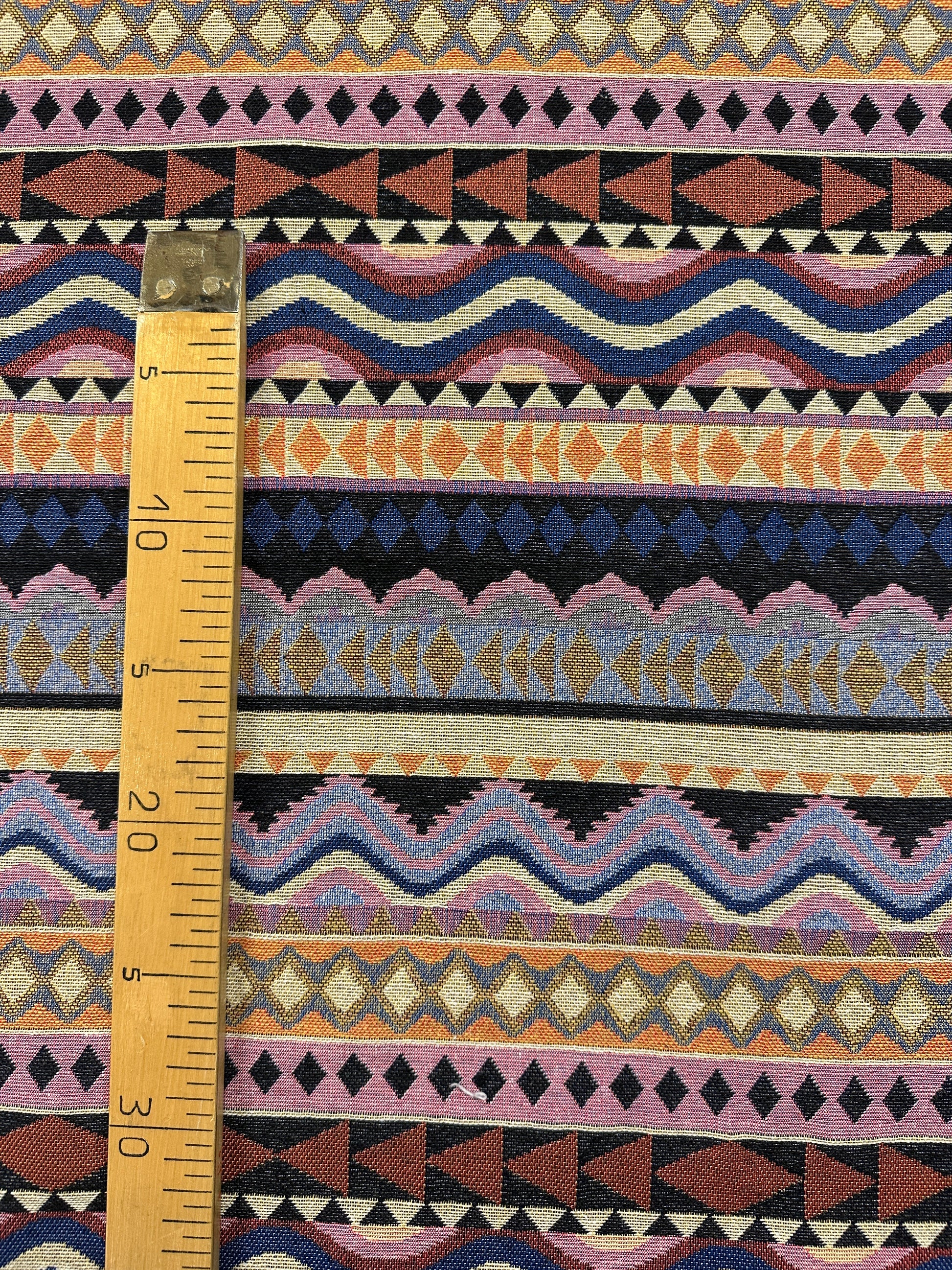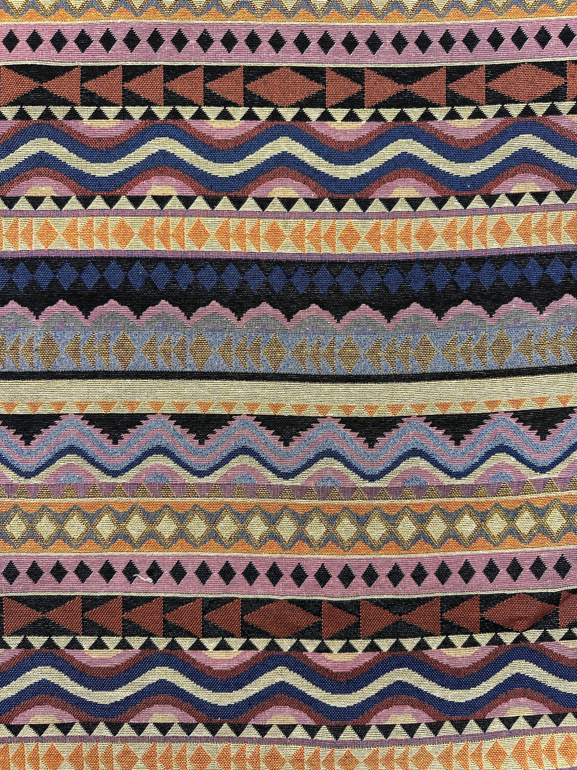 Gobeliinit ovat läpikudottuja kankaita, joista voi myös halutessaan käyttää nurjaa puolta. Tämä gobeliini on normaalia ohuempaa, joten sopii parhaiten vaateompeluun. Etenkin kääntötakki on kankaan kaksipuolisuuden vuoksi nerokas. Kuvion raportti on 30cm.