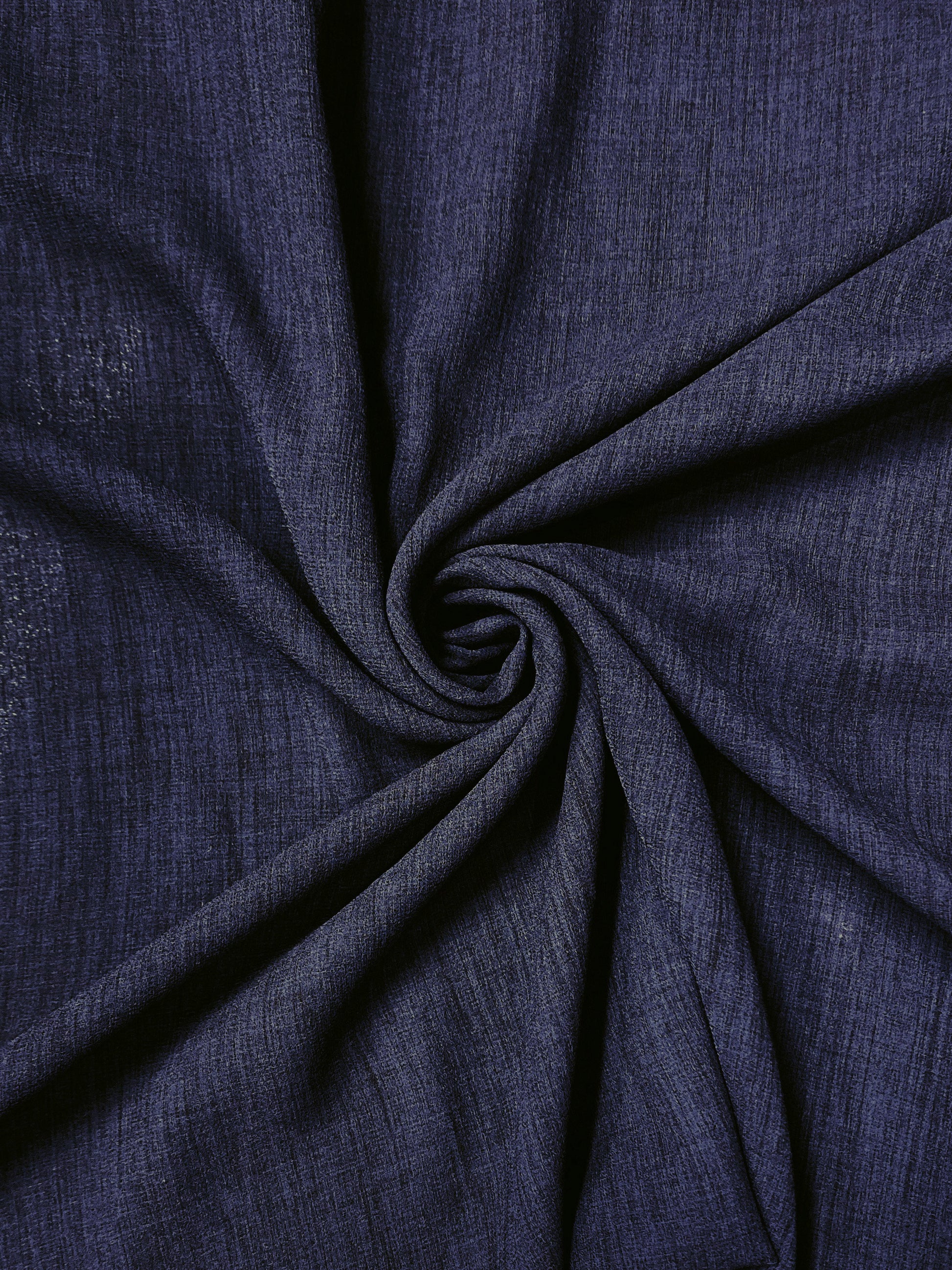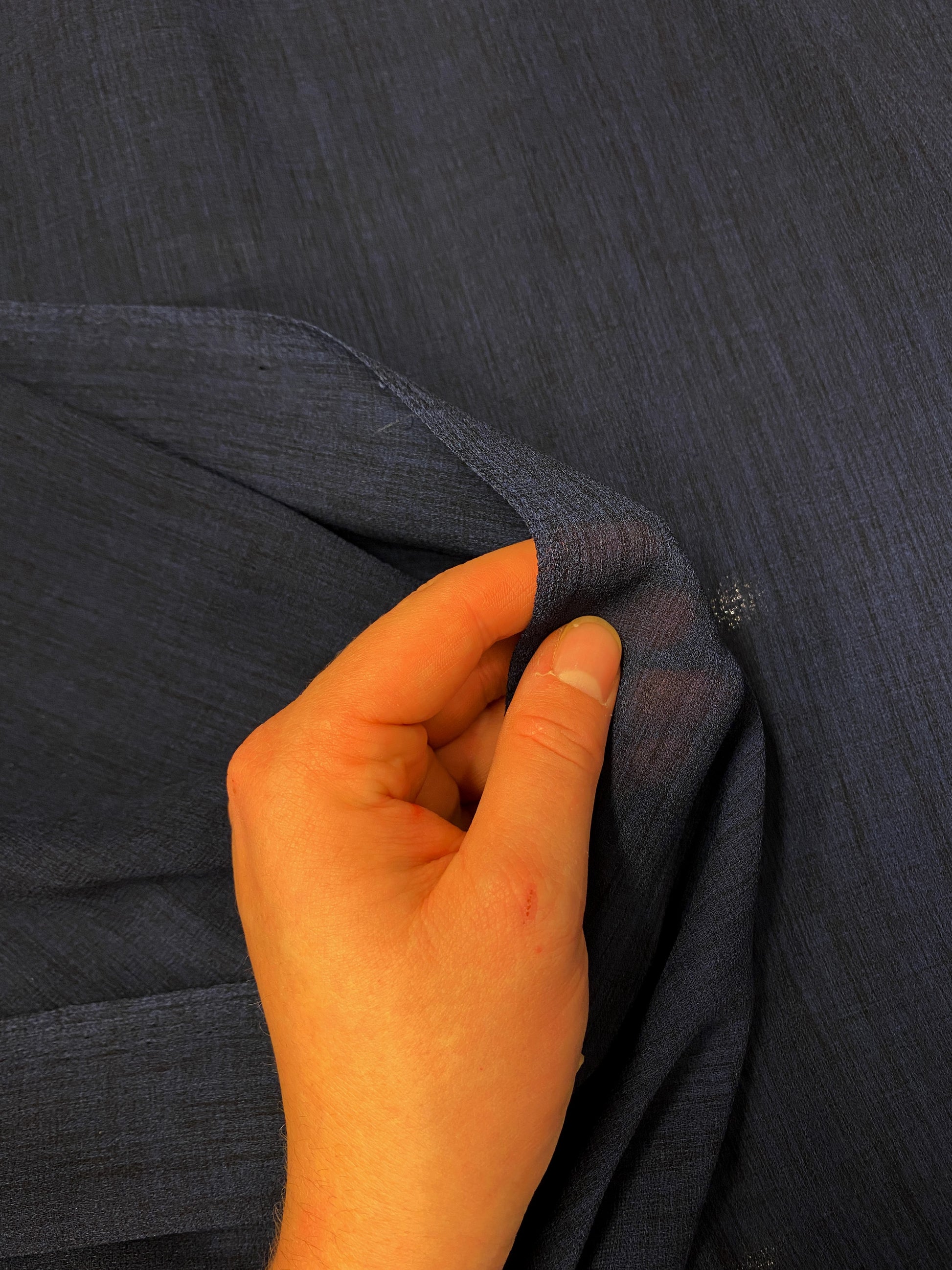 Tämä tumma, yönsininen ohut kreppisifonki on juuri täydellinen verho- ja asustekankaaksi. Kankaasta näkyy läpi, joten kevyet läpikuultavat valoverhot onnistuvat tästä täydellisesti. Samaten taiot kauniit tunikat, mekot ja mitä ikinä keksitkin.