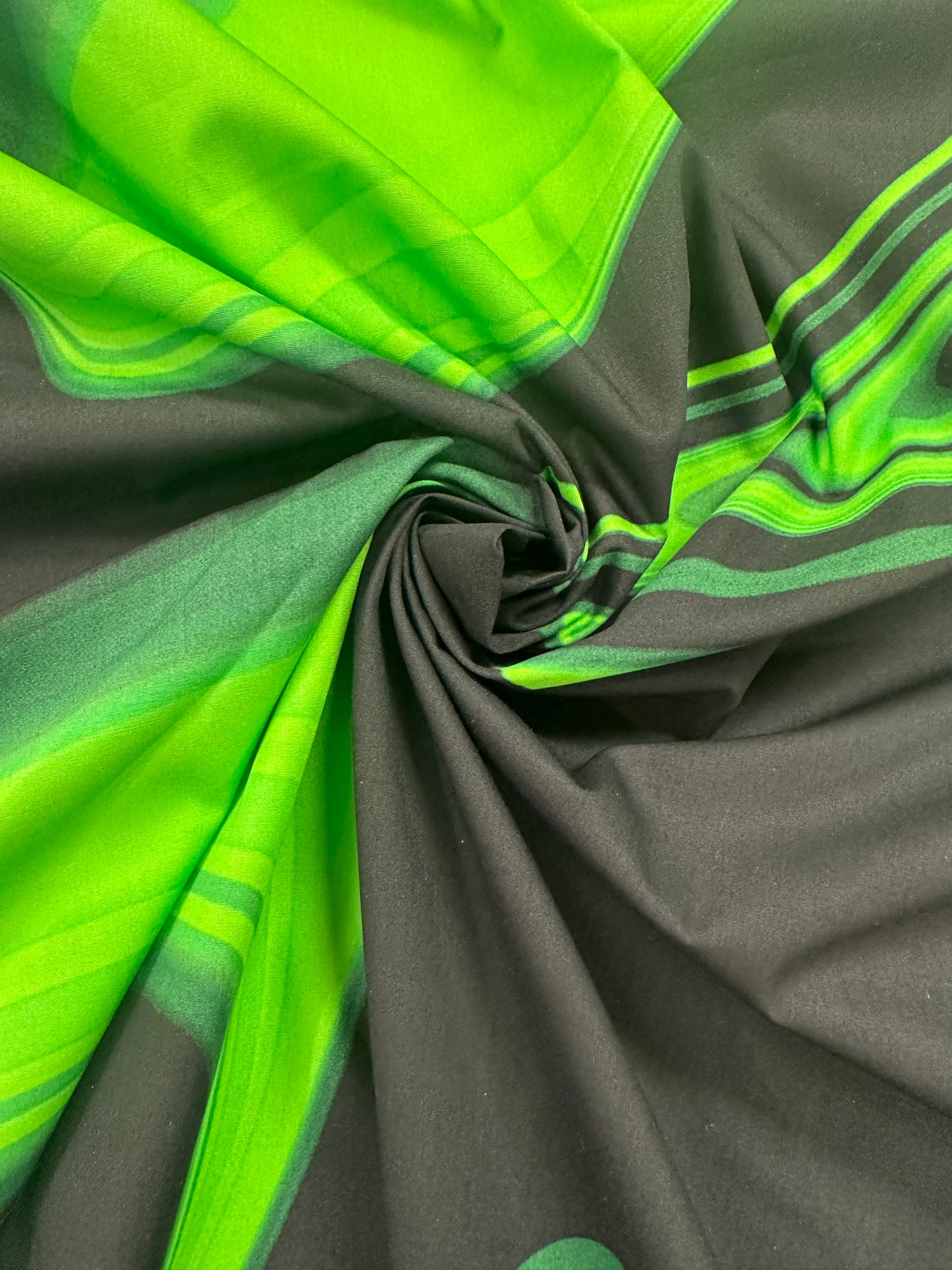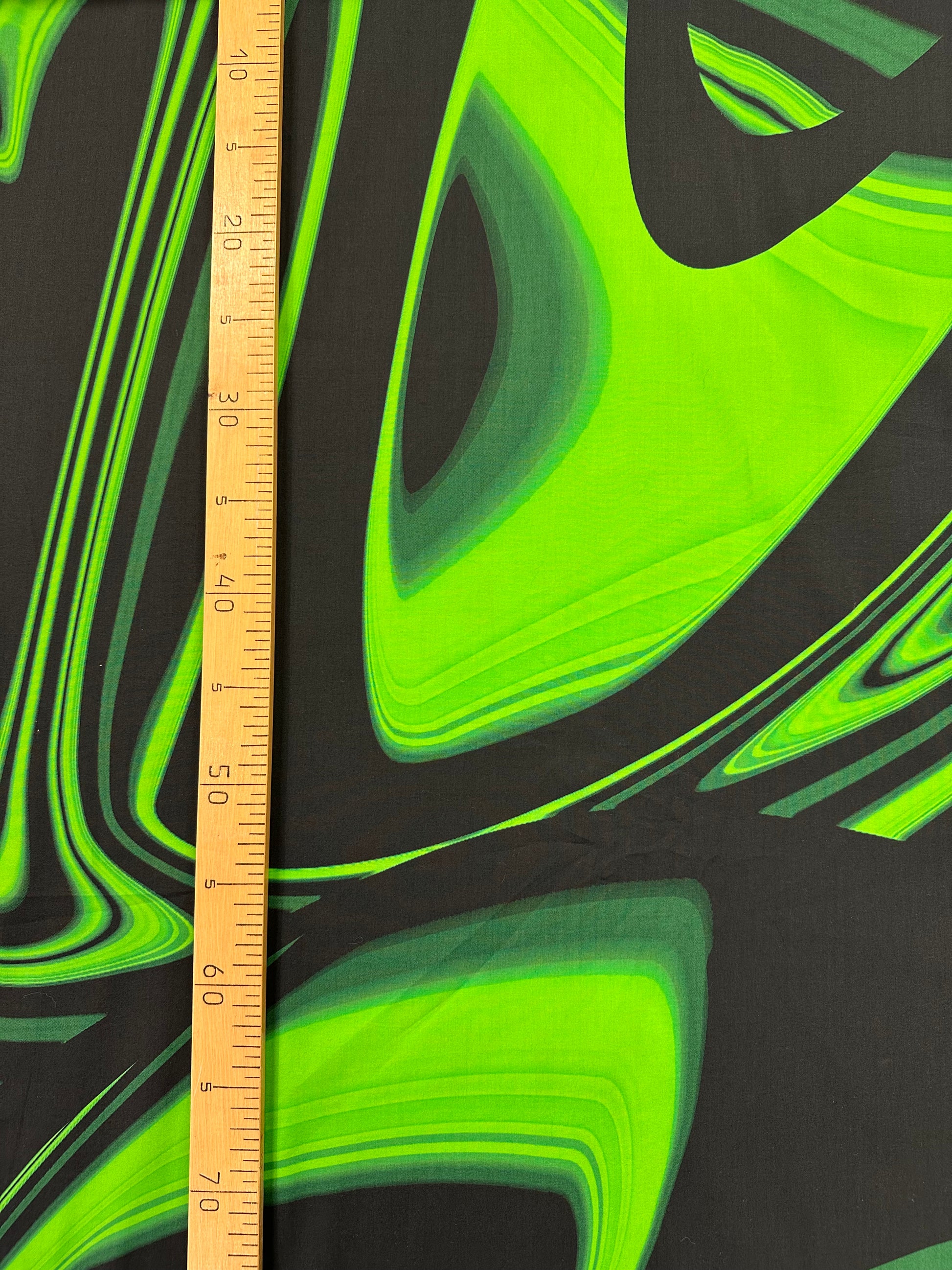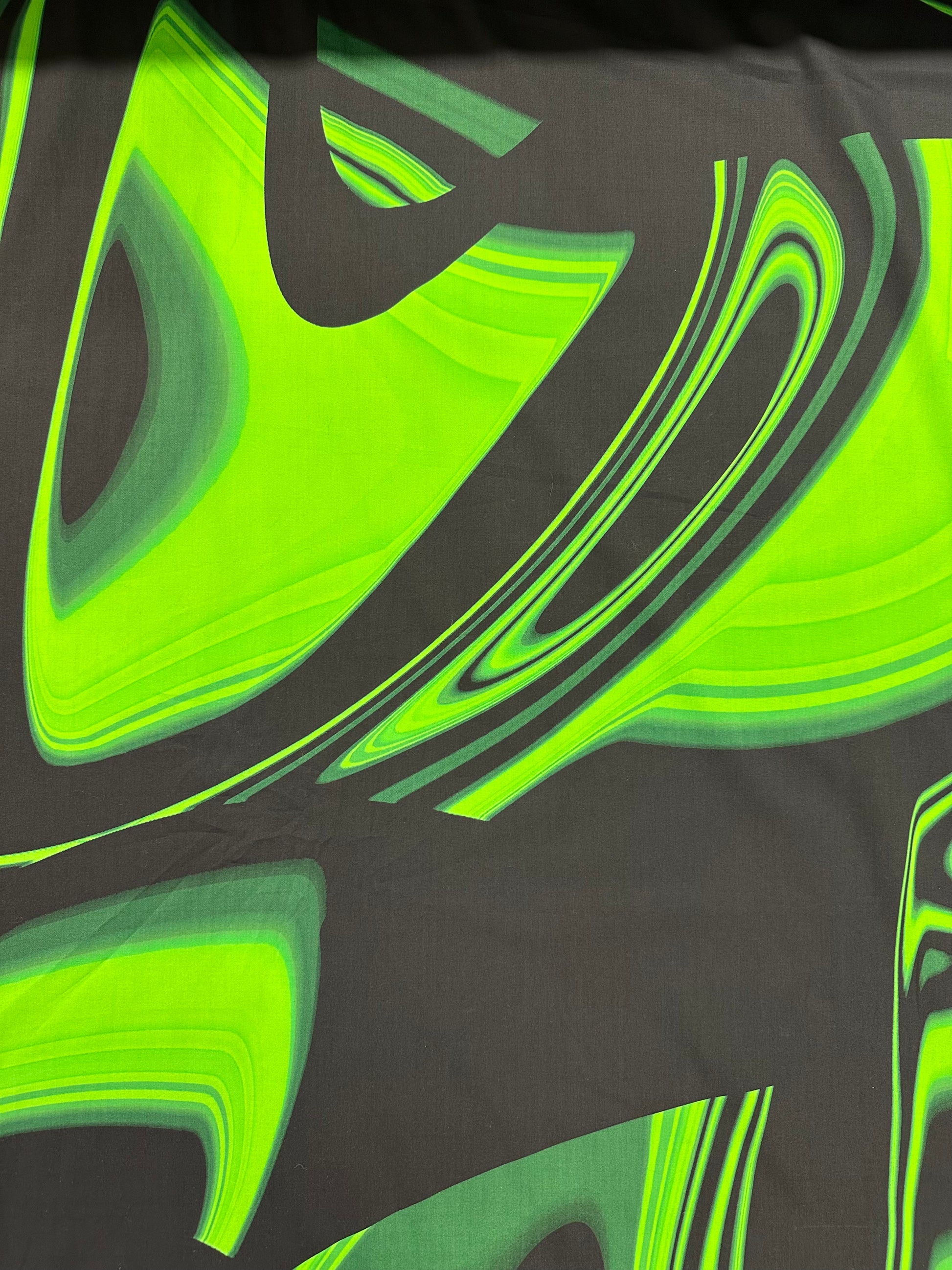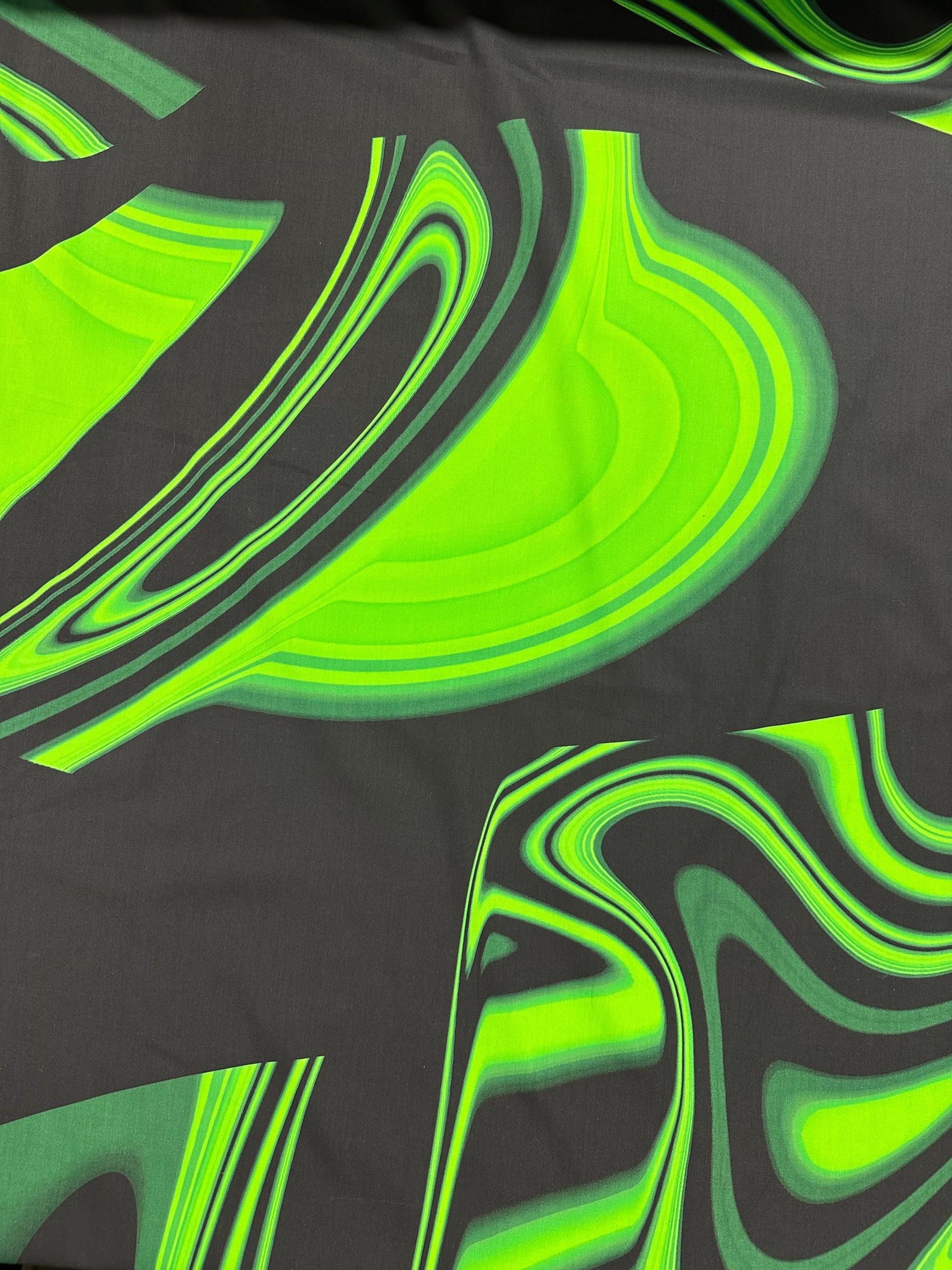 Erittäin suurikuvioinen, näyttävä puuvillakangas, joka soveltuu hyvin selkeälinjaisiin vaatteisiin, vaikka maksimekkoon tai -hameeseen, tunikaan, leveälahkeisiin housuihin tai housuhameeseen.